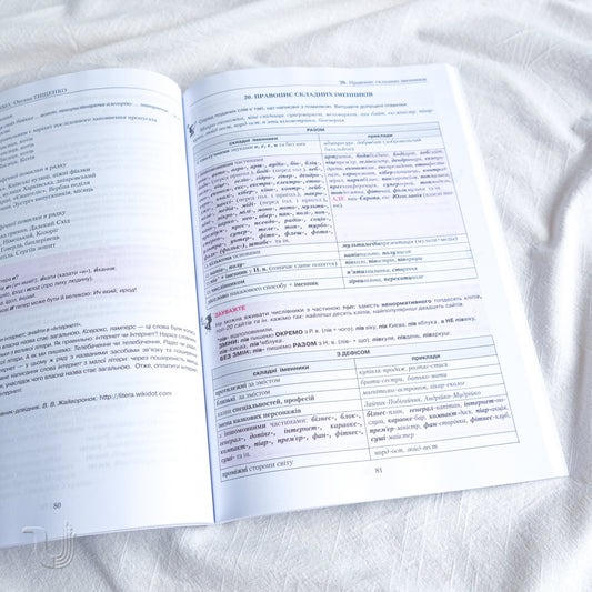 Ukrainian Language. Spelling in Tables, Test Tasks