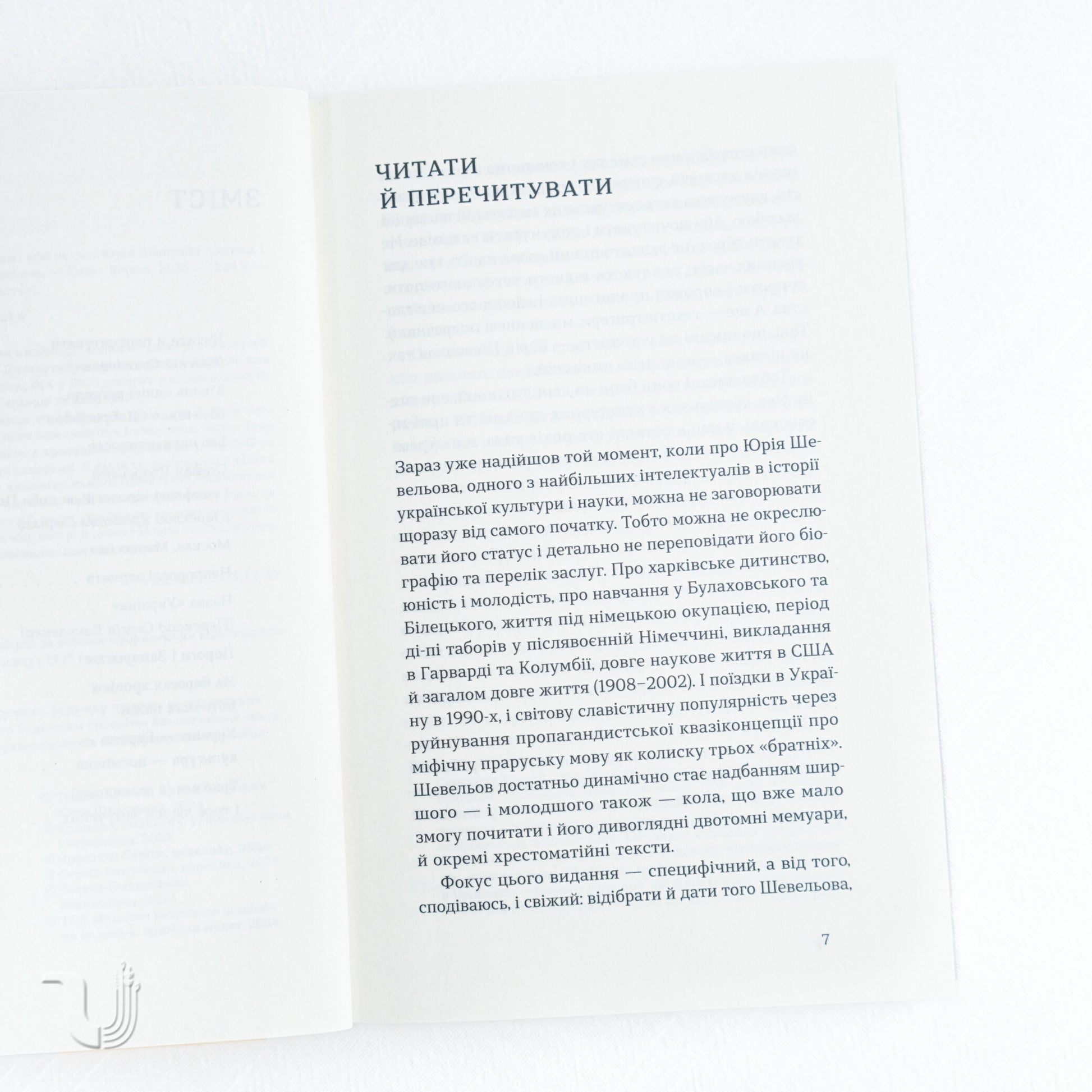 Yurii Shevelov is one of the most prominent figures in the history of Ukrainian intellectual thought. His life was full of trials and changes: a childhood and youth in Kharkiv, enduring the German occupation, camps in post-war Germany, and later teaching at prestigious universities like Harvard and Columbia. This edition has a special focus: to present a version of Shevelov who is extremely relevant to us, right here and now. The texts in the book are arranged in chronological order, covering a fifty-year panorama — from 1943 to 1997. These are smart, sharp, uncompromising, and original texts, written with a single agenda that is both clear and painfully familiar to us. A key feature of the edition is that all the original texts are formatted according to the 1928 "Kharkiv" orthography, which adds authenticity and depth to the perception of his legacy.