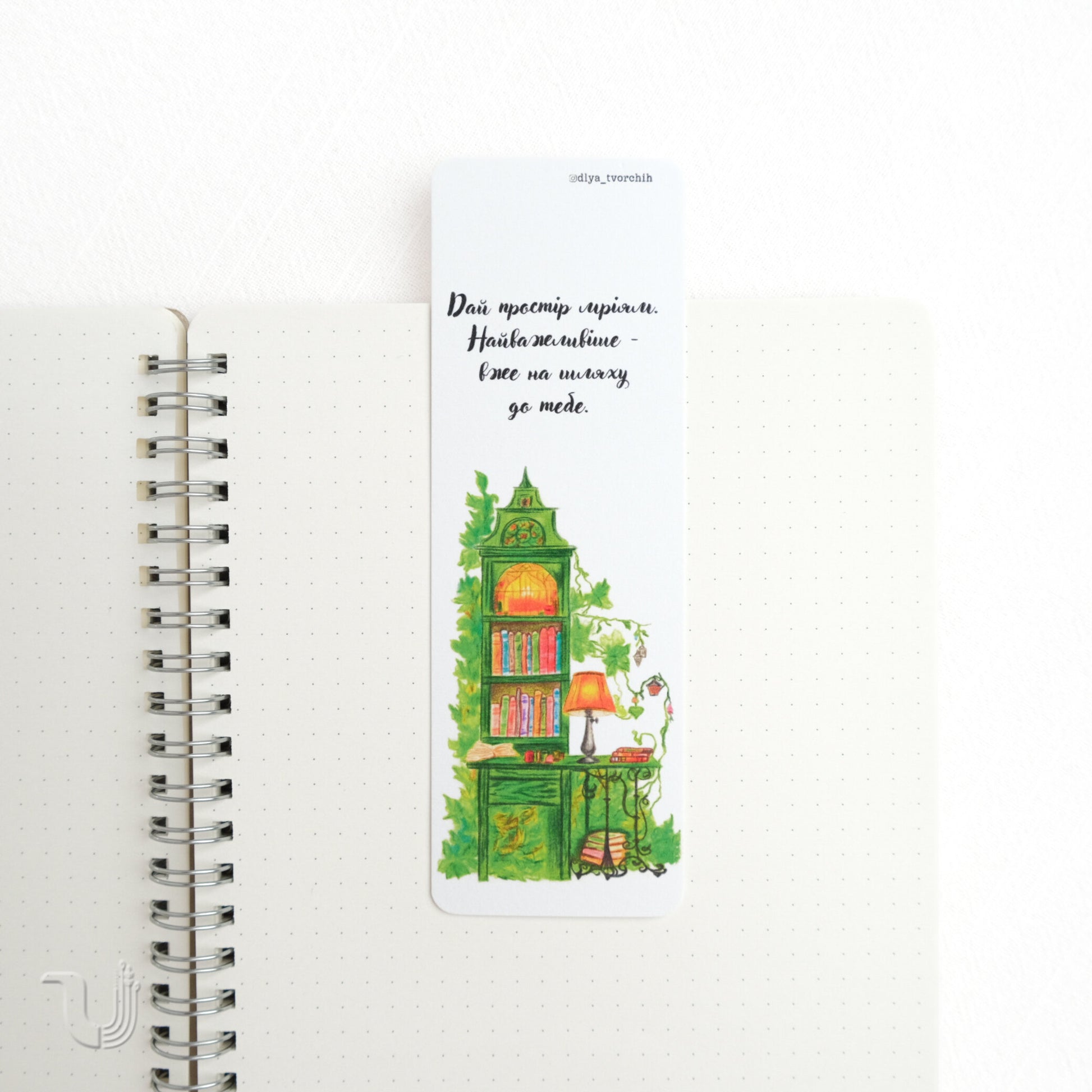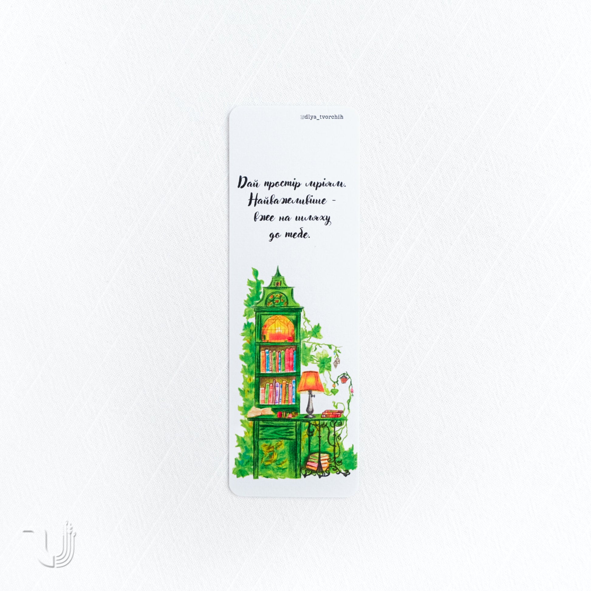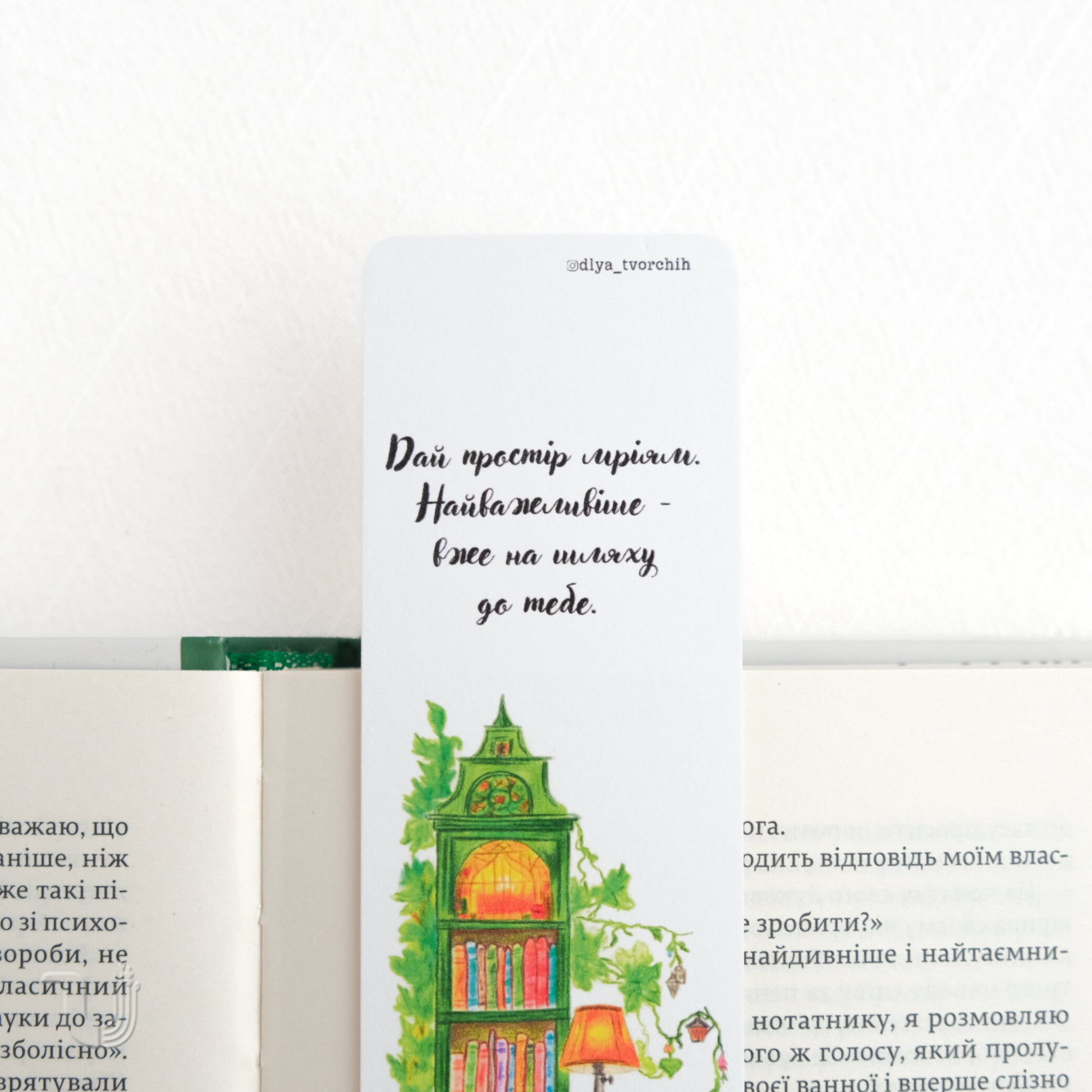 Ця книжкова закладка стане щоденним натхненням. Вона прикрашена авторською ілюстрацією, що запрошує поринути у світ уяви та відкриттів. Ідеально підходить для тих, хто цінує красу, зміст та підтримку своїх найсміливіших ідей.