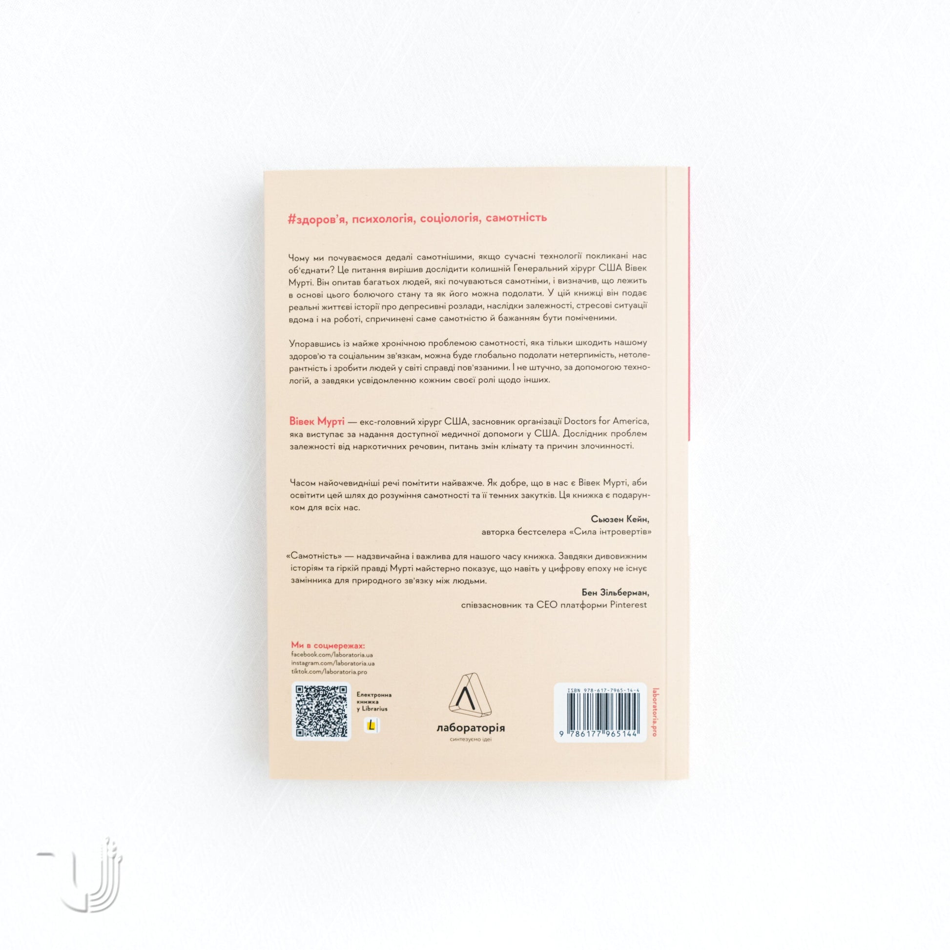 Книга розкриває проблему поступового збільшення відчуття самотності в людей, незважаючи на розвиток сучасних технологій, які мають на меті об'єднати нас. Автор книги, колишній високопосадовець і один з найголовніших лікарів у США Вівек Мурті, провів дослідження, під час якого він опитав людей, які почуваються самотніми, та визначив, що самотність є головною причиною депресивних розладів, жорстоких вчинків, залежностей та стресових ситуацій вдома та на роботі. У книзі автор розповідає справжні історії життя, що підтверджують його дослідження та надає поради, як подолати самотність. Книга дає читачам можливість зрозуміти сутність цієї складної проблеми та дізнатися, як можна навчитися впоратися з відчуттям самотності та побудувати здорові, щасливі стосунки з іншими людьми.