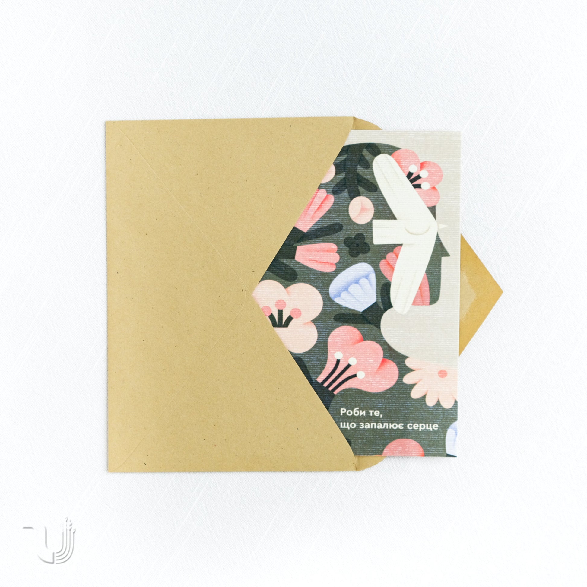 Листівка йде в парі з крафтовим конвертом.