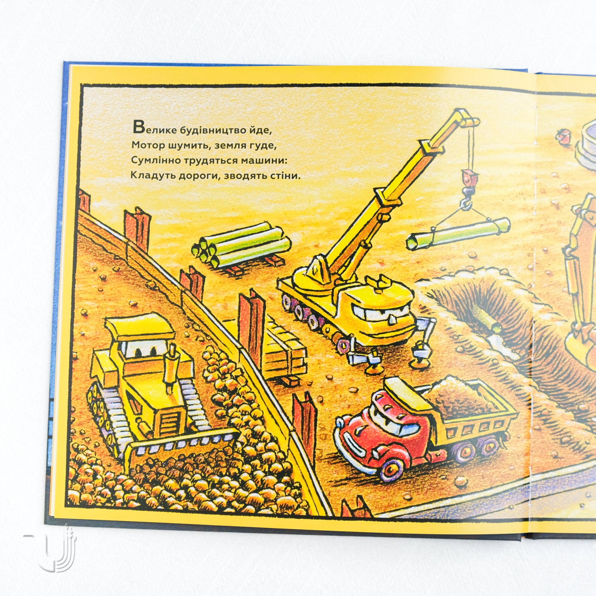Сумлінні машини, що працювали цілий день на будівництві, потребуть відпочинку. Вантажний кран, бетонозмішувач, самоскид, бульдозер і екскаватор втомлені, але щасливі, що могли допомогти у створенні чогось нового. Вони повільно засинають, оточені звуками ночі. Вітер шепоче в кронах дерев, зірки блимають на небі, а місяць освітлює будівельний майданчик. Машини мрійливо закриваються й засинають, мріючи про нові дні, повні роботи та пригод.